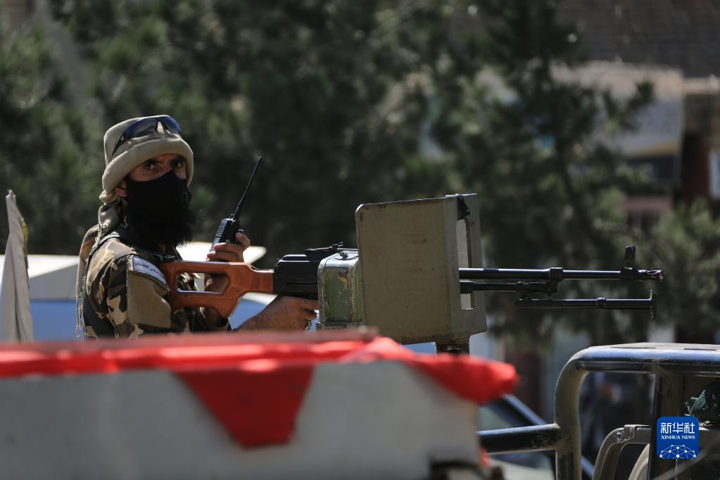 9月30日,在阿富汗喀布爾,安全人員在爆炸現場(chǎng)附近警戒。