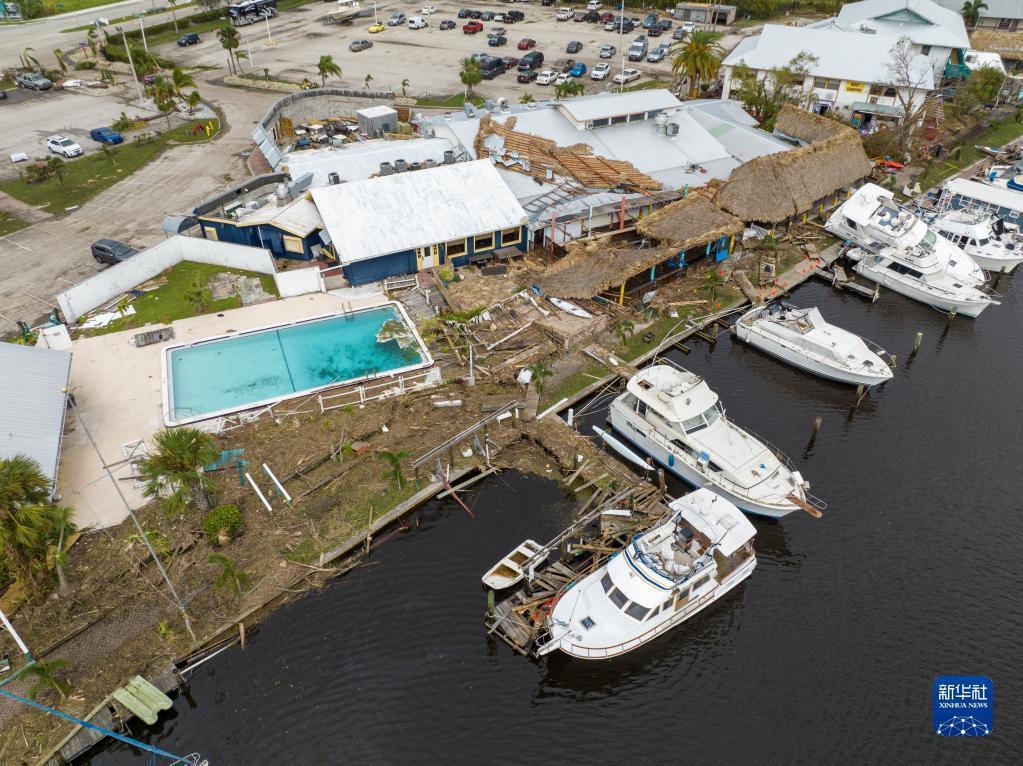 9月29日,在美國佛羅里達州西南沿海的邁爾斯堡,颶風(fēng)“伊恩”給當地房屋、道路等設施帶來(lái)不同程度破壞。