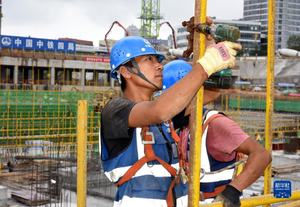10月1日,在青島國際郵輪母港區啟動(dòng)區地下空間項目工地,中鐵四局的架工班工人許洪澤在工地上忙碌。