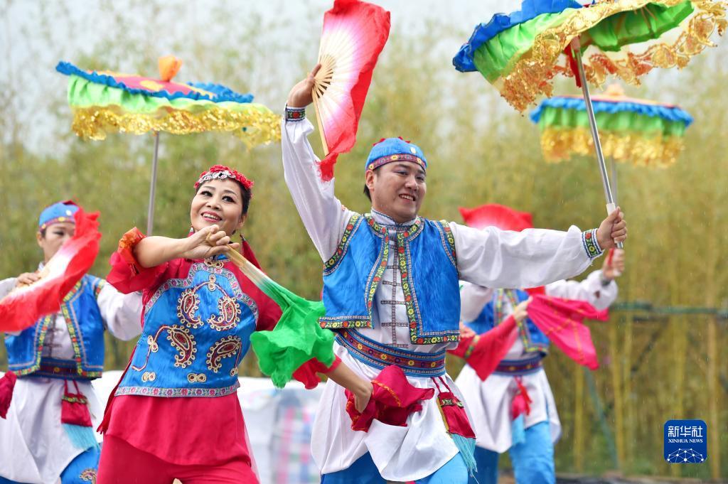10月1日,在河北省石家莊市井陘縣小作鎮一家現代農業(yè)園,當地群眾扭“拉花”歡度國慶節。