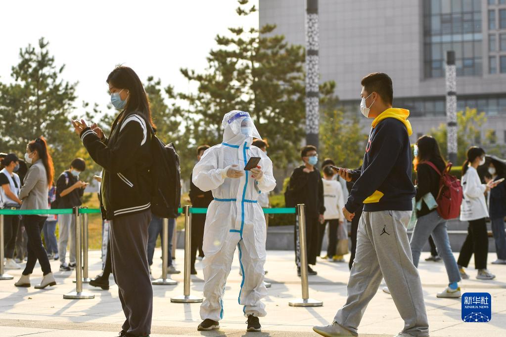10月2日,在吉林省長(cháng)春市一處便民核酸檢測點(diǎn),工作人員為前來(lái)進(jìn)行核酸檢測的市民掃碼登記。