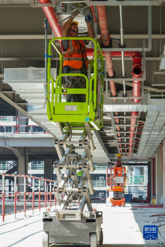 10月2日,中建三局一公司的施工人員在南京市建鄴區小米集團華東總部項目施工現場(chǎng)作業(yè)。