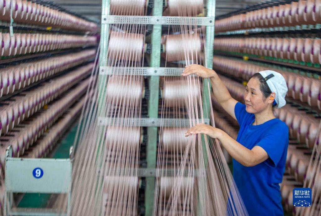 10月2日,紡織工人在江蘇同欣化纖有限公司生產(chǎn)一線(xiàn)作業(yè)。