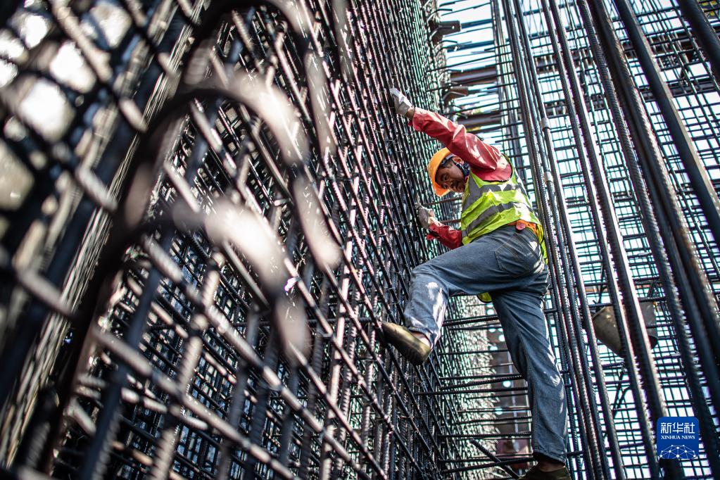 10月2日,中鐵七局工人在滬渝蓉高鐵武宜段龍泉河特大橋施工現場(chǎng)作業(yè)。