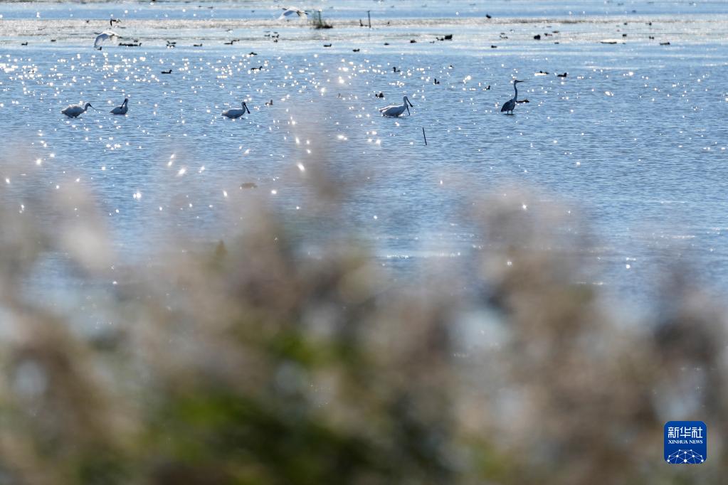 2022年9月9日,在位于黑龍江省的富錦國家濕地公園,一群水鳥(niǎo)在捕食。