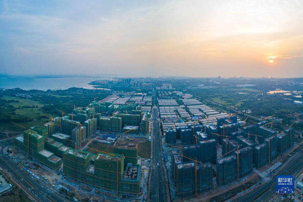 在海南洋浦經(jīng)濟開(kāi)發(fā)區拍攝的建設中的東部生活區(無(wú)人機全景照片,9月26日攝)。