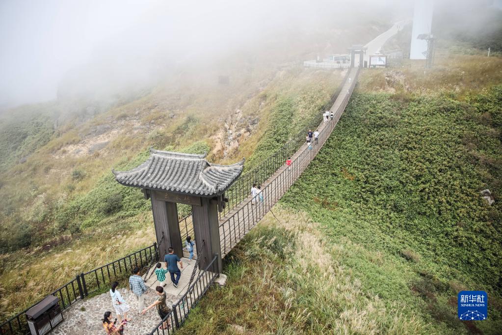 10月1日,游客在湖南省永州市藍山縣云冰山景區觀(guān)光游玩。