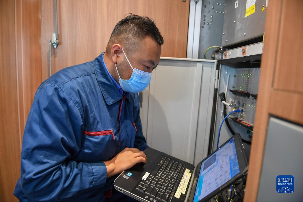 10月2日,在長(cháng)春動(dòng)車(chē)運用所,技術(shù)人員朱磊檢查列車(chē)設備。
