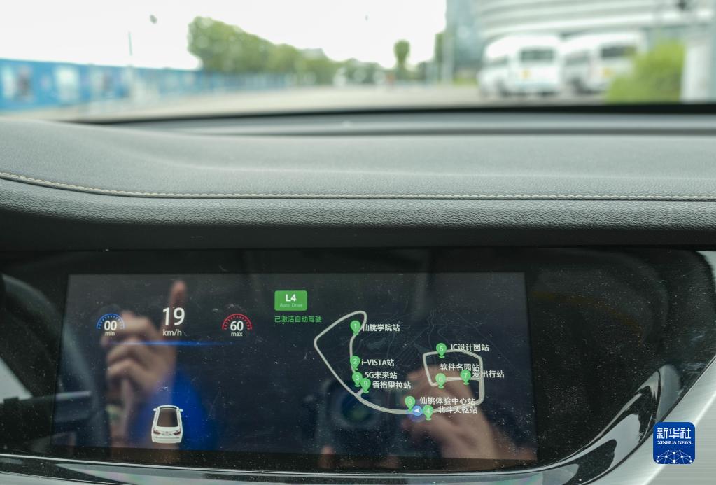 一輛L4級自動(dòng)駕駛汽車(chē)在自動(dòng)駕駛模式下,沿著(zhù)重慶仙桃國際大數據谷示范運營(yíng)線(xiàn)路的開(kāi)放城市道路進(jìn)行自動(dòng)駕駛模式行駛測試(2019年7月24日攝)。