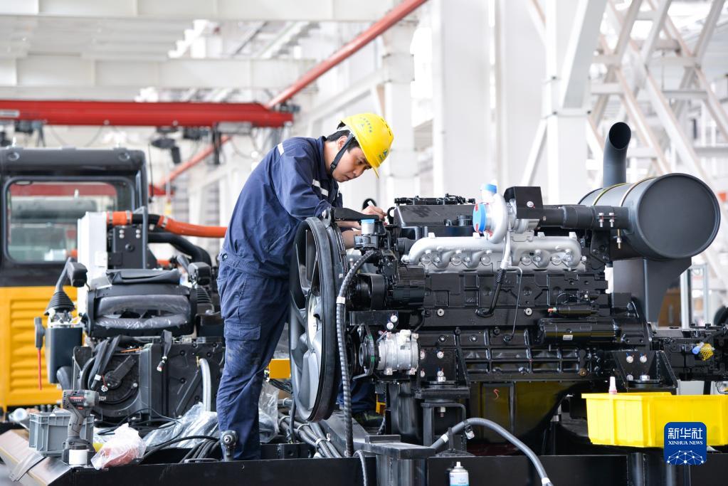 工人在位于重慶兩江新區的三一重工西南地區首個(gè)智能化“燈塔工廠(chǎng)”項目?jì)茸鳂I(yè)(2021年7月19日攝)。