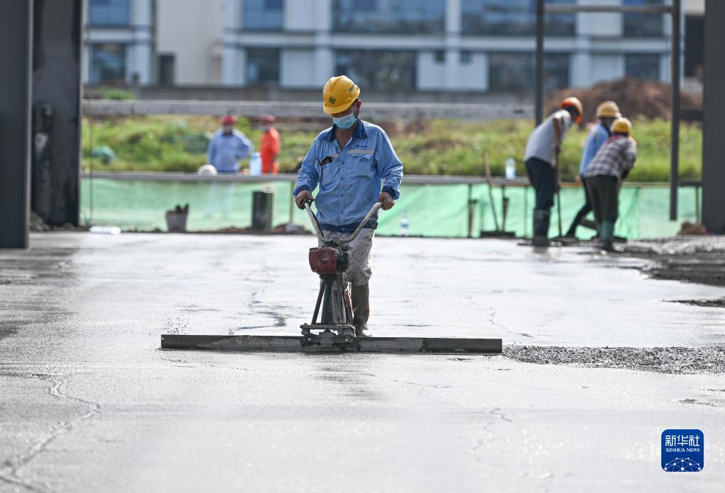 10月2日,工人在位于海南洋浦經(jīng)濟開(kāi)發(fā)區的申能電氣風(fēng)電新能源裝備產(chǎn)業(yè)項目工地施工。