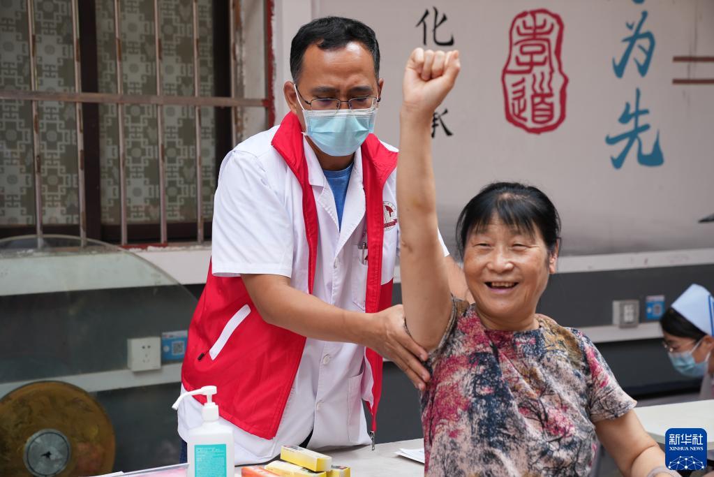 在南昌市東湖區火神廟社區,“時(shí)間銀行”志愿團隊組織社區的老年人開(kāi)展義診(9月29日攝)。