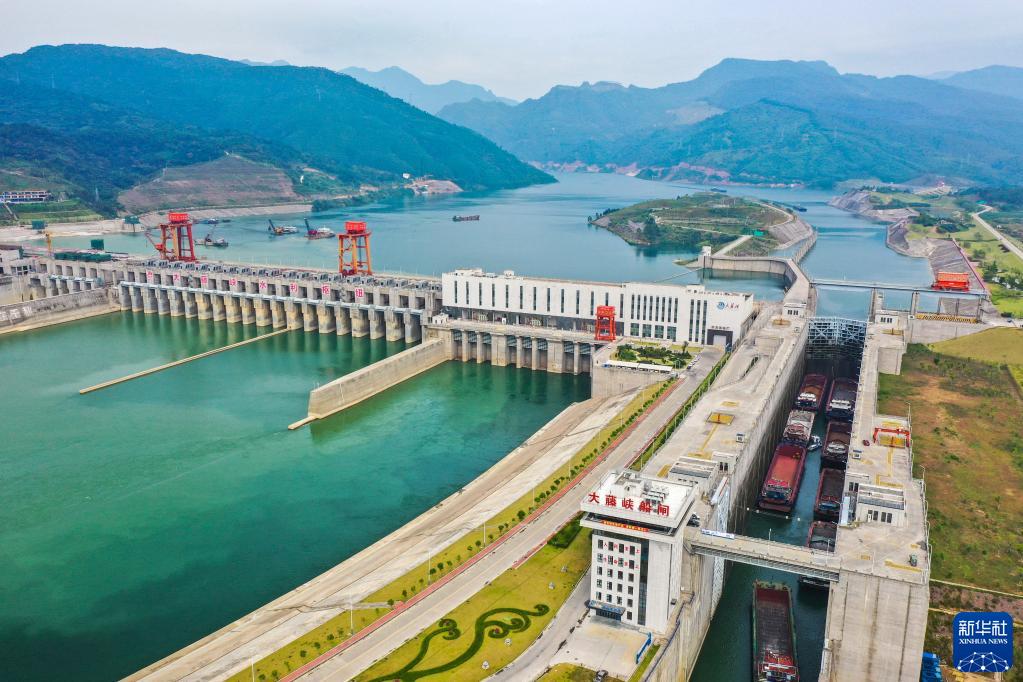 這是建設中的廣西大藤峽水利樞紐工程和已經(jīng)投入使用的船閘(2022年9月29日攝,無(wú)人機照片)。