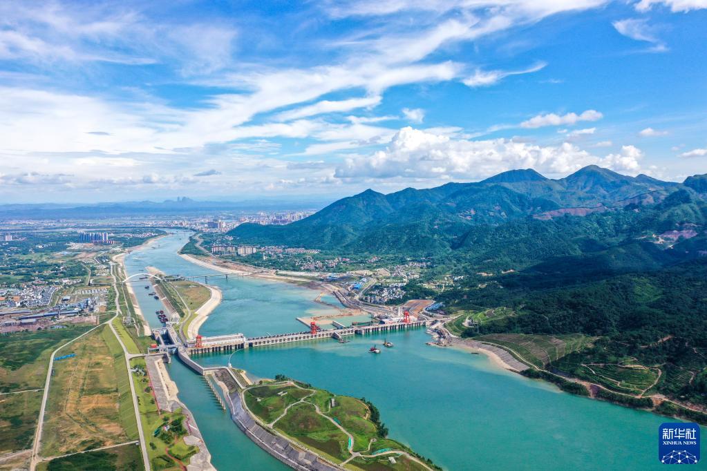 這是建設中的廣西大藤峽水利樞紐工程(2022年8月9日攝,無(wú)人機照片)。