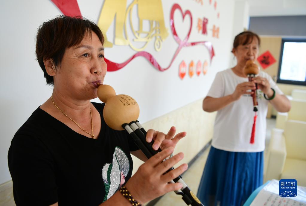 9月30日,老人在肥西縣上派鎮“愛(ài)和家”居家養老服務(wù)中心練習樂(lè )器。