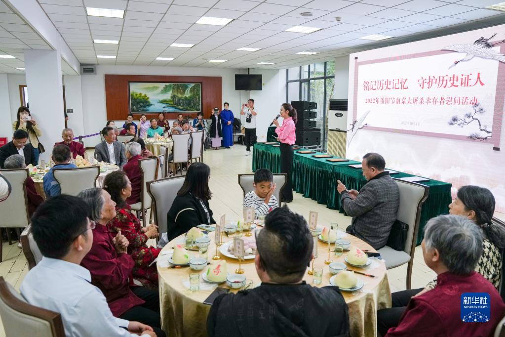 當日是重陽(yáng)節,侵華日軍南京大屠殺遇難同胞紀念館邀請9位幸存者以及他們的后代,一起描壽桃、聽(tīng)白局、聊今夕變化,共度重陽(yáng)節?;顒?dòng)中,9位老人在手印盒中按下手印并簽名,留存歷史記憶。