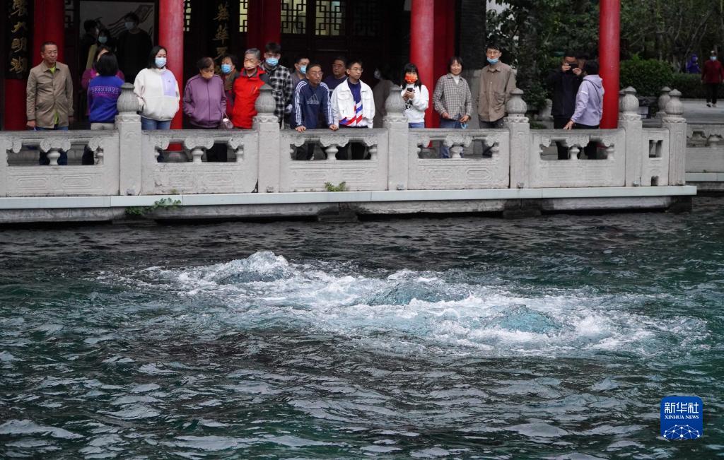 10月4日,游客在觀(guān)賞趵突泉。
