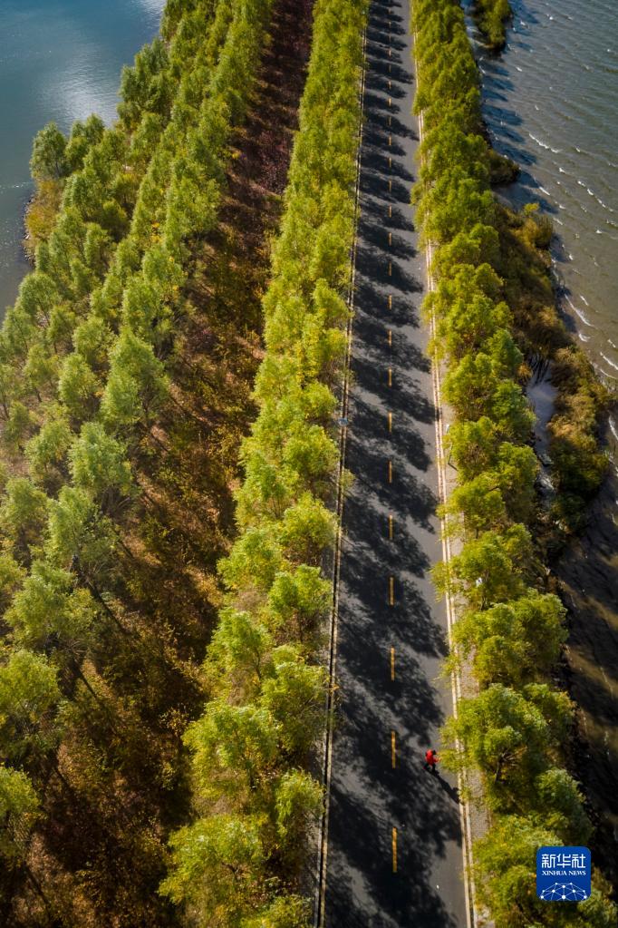 這是10月4日拍攝的哈爾濱呼蘭河口濕地公園內的景色(無(wú)人機照片)。