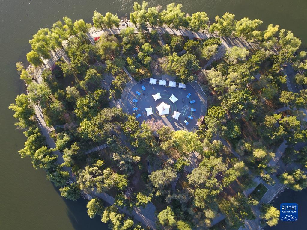 這是10月4日拍攝的吉林長(cháng)春南湖公園湖心島秋景(無(wú)人機照片)。