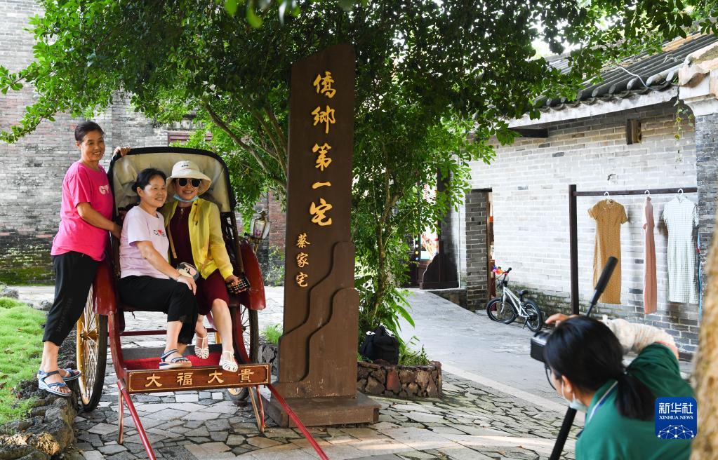 游客在海南省瓊海市博鰲鎮留客村的蔡家宅內合影留念(2022年10月2日攝)。