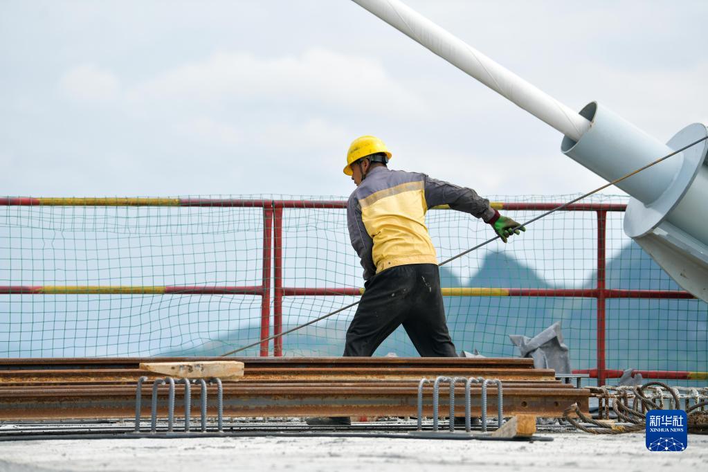 10月6日,中交二公局的工人在貴州龍里河大橋上對附屬工程施工。