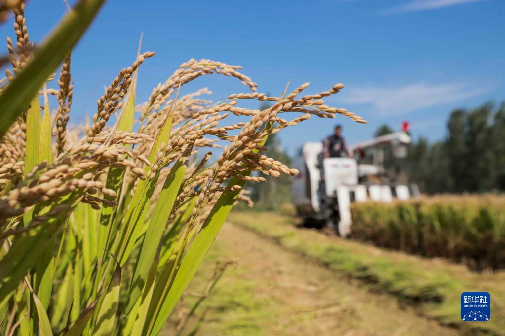 10月6日,農民在河北省唐山市海港經(jīng)濟開(kāi)發(fā)區王灘鎮駕駛收割機收獲水稻。