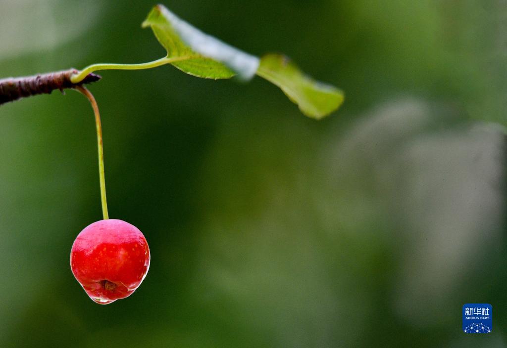 在河北省石家莊市,雨后的海棠果上掛著(zhù)水珠(10月3日攝)。