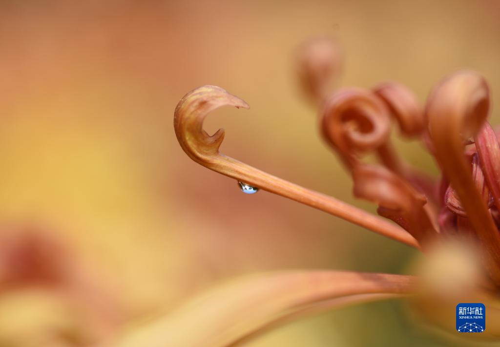 在云南麗江,綻放的菊花上掛著(zhù)雨珠(9月29日攝)。