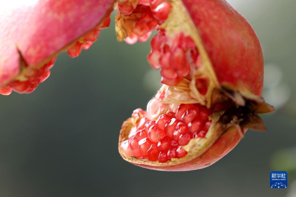 在山東省棗莊市嶧城石榴園拍攝的開(kāi)裂的石榴(10月2日攝)。