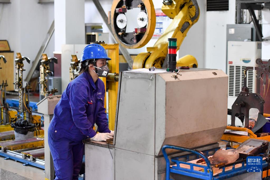 10月6日,在哈電集團哈爾濱電機廠(chǎng)有限責任公司的生產(chǎn)車(chē)間,楊萌查看設備運行參數。