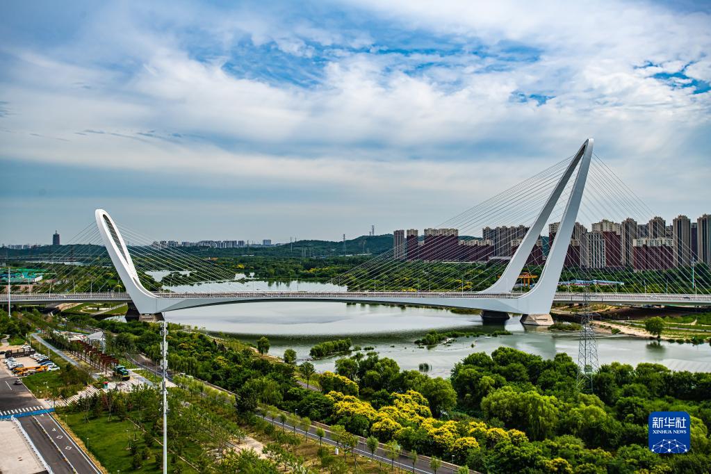 這是2022年7月19日在北京拍攝的永定河和新首鋼大橋。