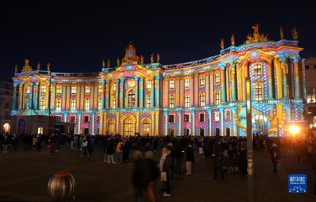 10月7日,德國柏林洪堡大學(xué)法學(xué)院被燈光點(diǎn)亮。新華社發(fā)(斯特凡·蔡茨攝)