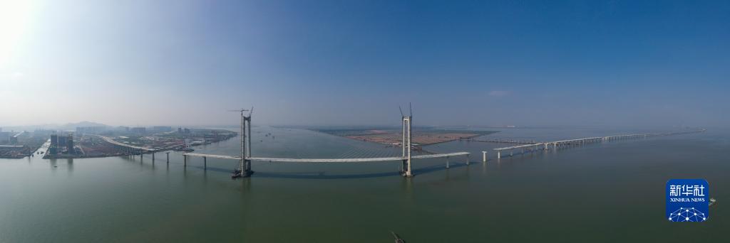建設中的深中通道中山大橋(10月8日攝,無(wú)人機照片)。