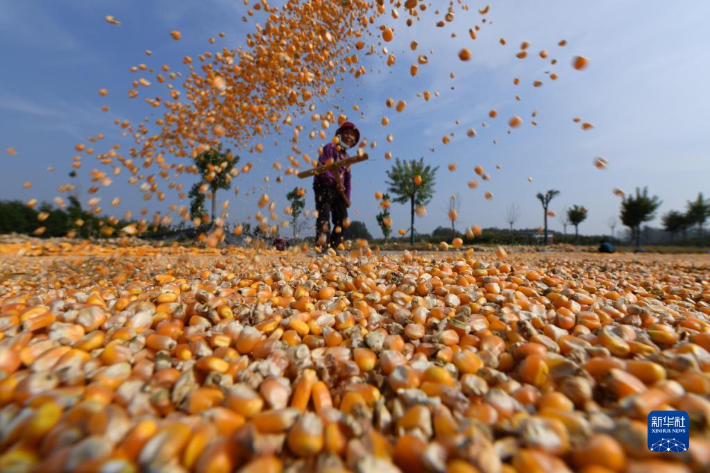 金秋十月,各地農民搶抓農時(shí),晾曬收獲的玉米、稻谷等,鄉間呈現出金色的豐收圖景。