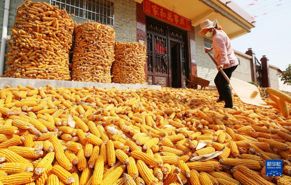 金秋十月,各地農民搶抓農時(shí),晾曬收獲的玉米、稻谷等,鄉間呈現出金色的豐收圖景。