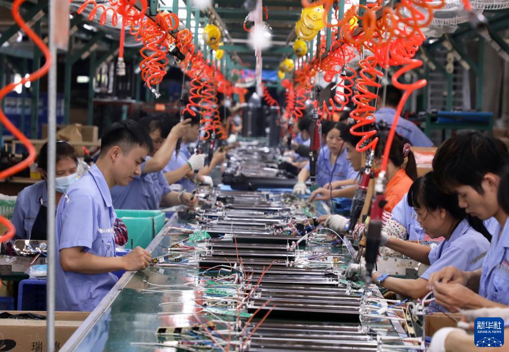 工人在廣東世聯(lián)電器電暖器生產(chǎn)線(xiàn)作業(yè)(9月29日攝)。