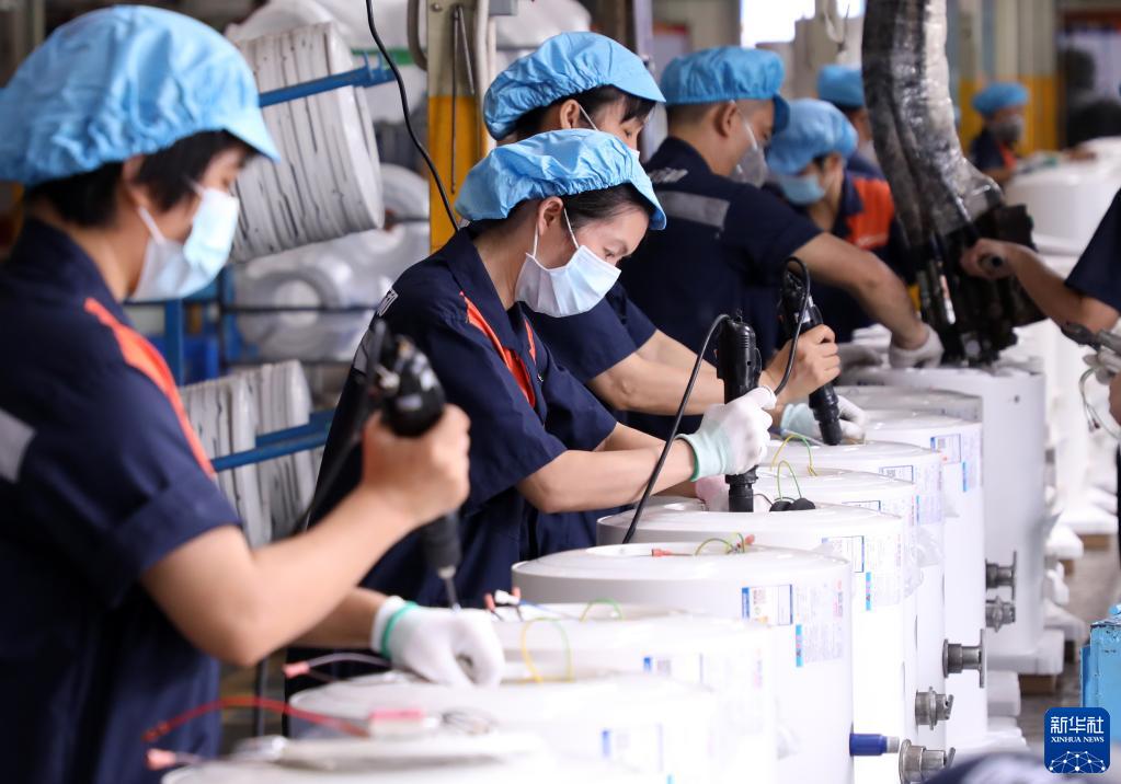 廣東萬(wàn)和電氣工人在生產(chǎn)線(xiàn)作業(yè)(9月30日攝)。