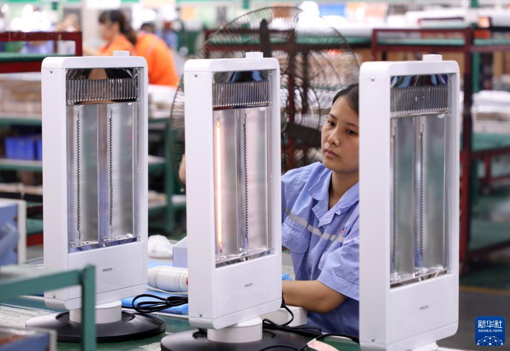 廣東世聯(lián)電器員工在檢測電暖器(9月29日攝) 。
