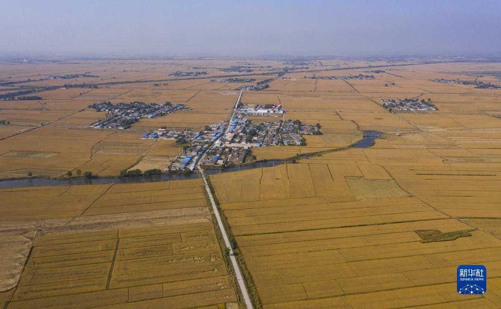 10月8日拍攝的唐山海港經(jīng)濟開(kāi)發(fā)區王灘鎮的稻田(無(wú)人機照片)。