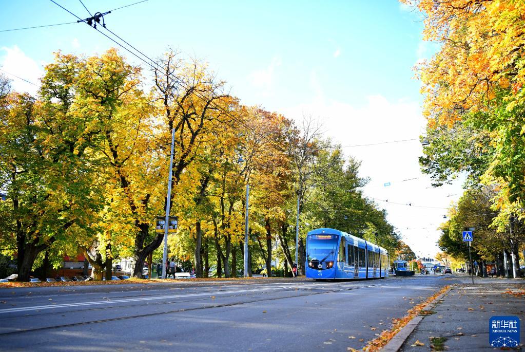 這是10月8日在瑞典斯德哥爾摩街頭拍攝的秋景。