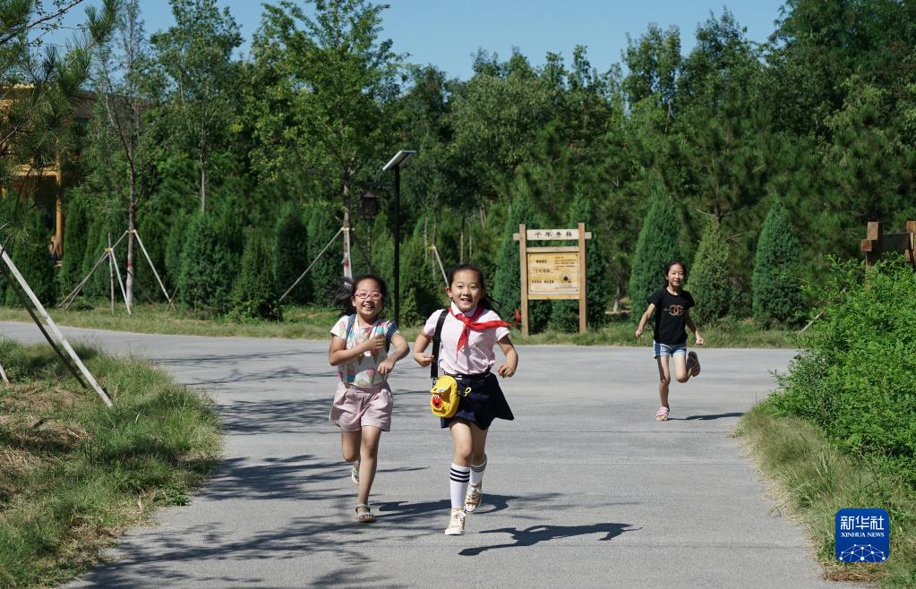 小學(xué)生們在雄安新區“千年秀林”內游玩(2019年8月29日攝)。