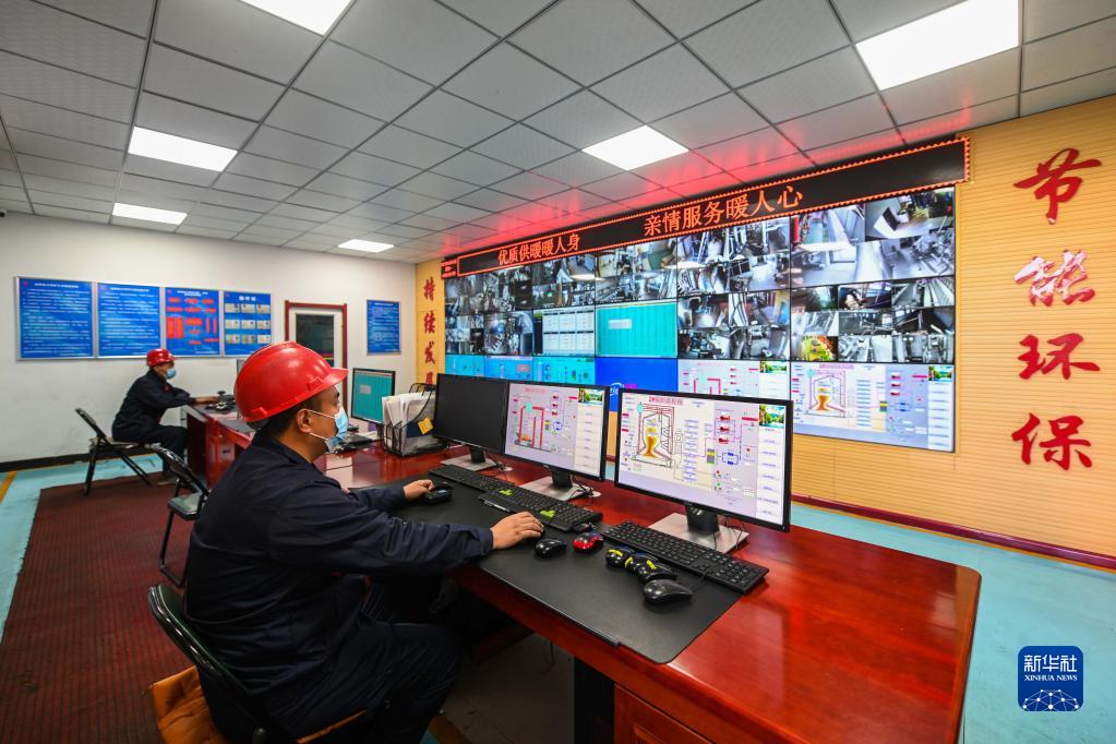 10月10日,在呼和浩特市旭陽(yáng)熱力供暖有限公司北熱源廠(chǎng),工作人員在監測鍋爐運行情況。