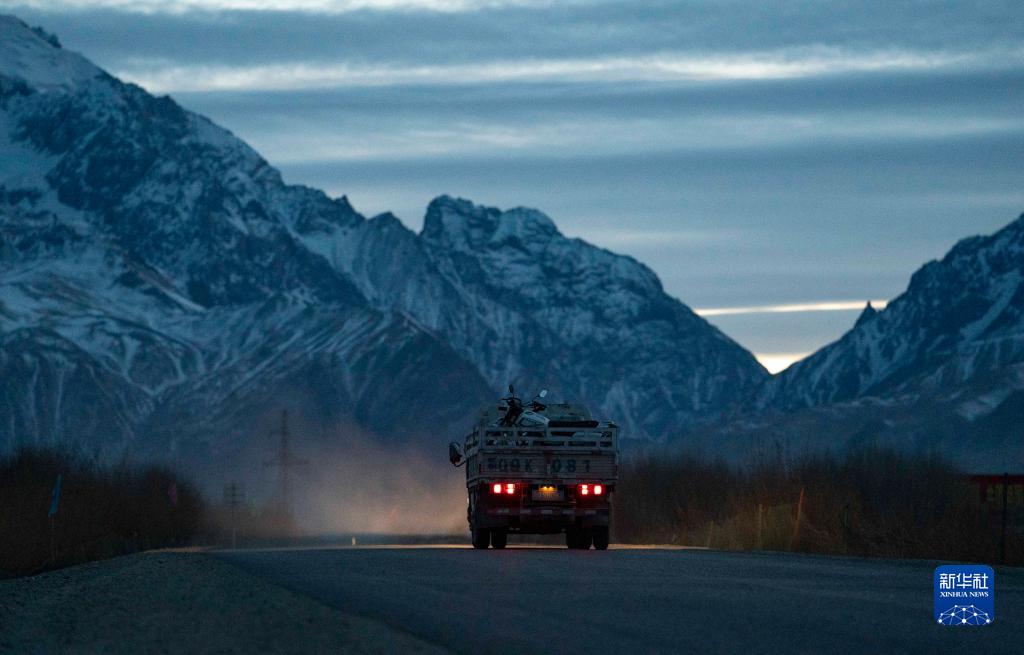 新疆塔什庫爾干塔吉克自治縣牧民開(kāi)車(chē)載著(zhù)搬家行李行駛在通往縣城的山區公路上(2018年11月17日攝)。