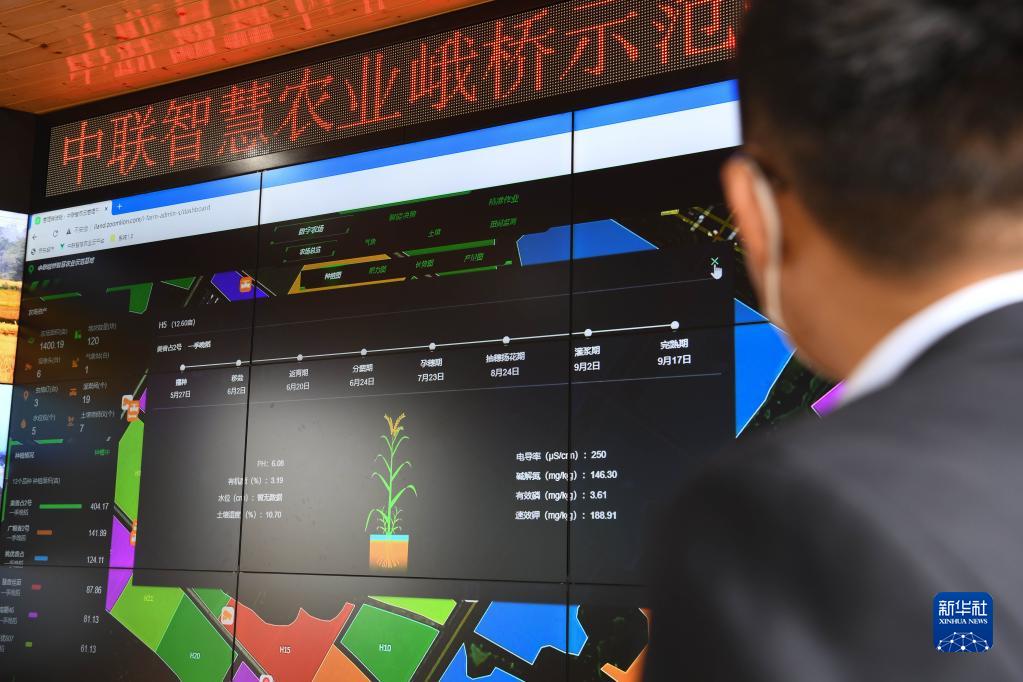 10月9日,在中聯(lián)智慧農業(yè)峨橋示范基地內,工作人員在介紹智慧農業(yè)云平臺。