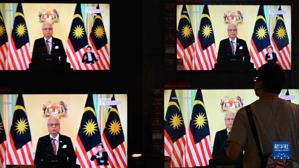 10月10日,一名男子在馬來(lái)西亞吉隆坡一家電器店觀(guān)看馬來(lái)西亞總理伊斯邁爾電視講話(huà)直播。