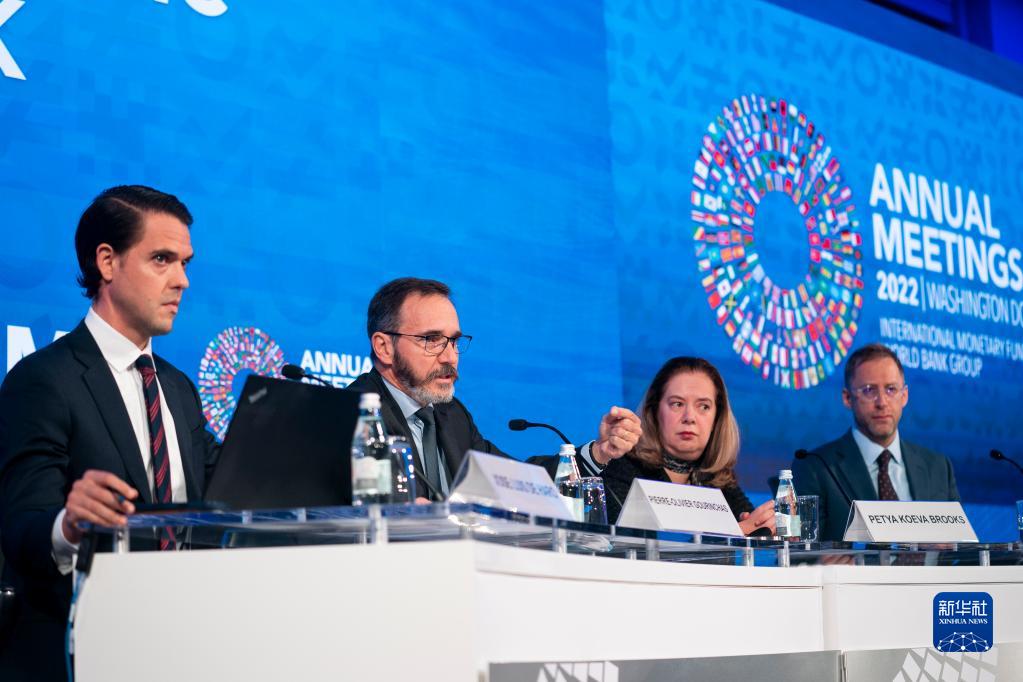 這是10月11日在美國華盛頓拍攝的國際貨幣基金組織(IMF)《世界經(jīng)濟展望報告》新聞發(fā)布會(huì )。
