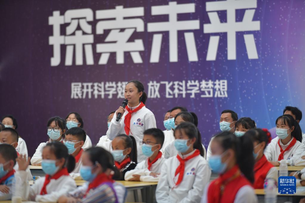 10月12日,學(xué)生在云南省大理新世紀中學(xué)收看“天宮課堂”第三課時(shí)向航天員提問(wèn)。