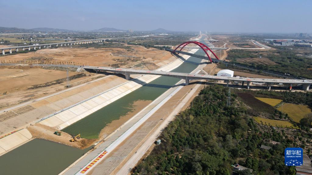 這是中鐵十局三建公司承建的引江濟淮工程(安徽段)菜巢線(xiàn)廬江段(10月13日,無(wú)人機照片)。