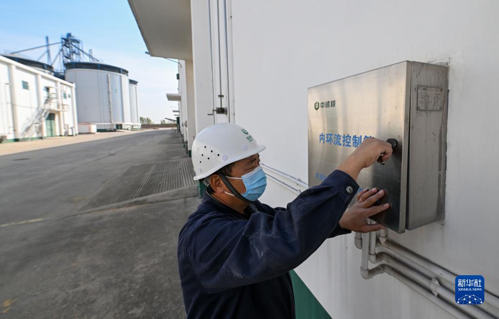 10月12日,在中央儲備糧天津東麗直屬庫有限公司東麗庫區,工作人員打開(kāi)內環(huán)流控制系統,調節倉房溫度。