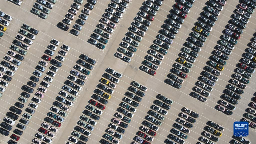 10月12日在位于蕪湖市的奇瑞汽車(chē)股份有限公司新能源一期工廠(chǎng)拍攝的等待交付的新能源汽車(chē)(無(wú)人機照片)。